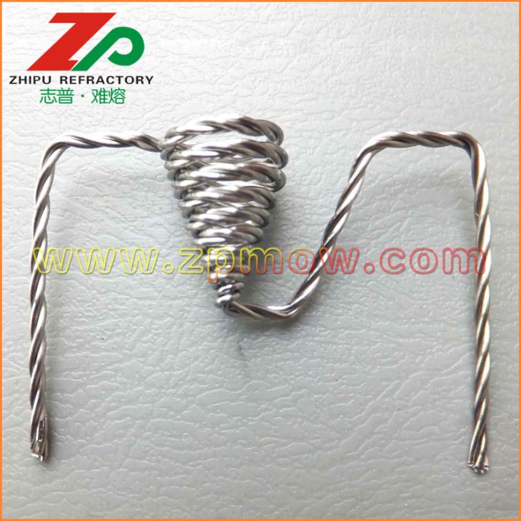 鎢加熱子(鎢蒸發(fā)線圈)是一種由不同規(guī)格的單股或多股摻雜鎢絲組成各種形狀的金屬制品。通過(guò)特殊的熱處理工藝,具有很強(qiáng)的抗腐蝕性和高溫性能,穩(wěn)定性好,使用壽命長(zhǎng),廣泛應(yīng)用于薄膜技術(shù)的真空涂鍍、金屬蒸發(fā)、制鏡行業(yè)、顯像管行業(yè)等領(lǐng)域。